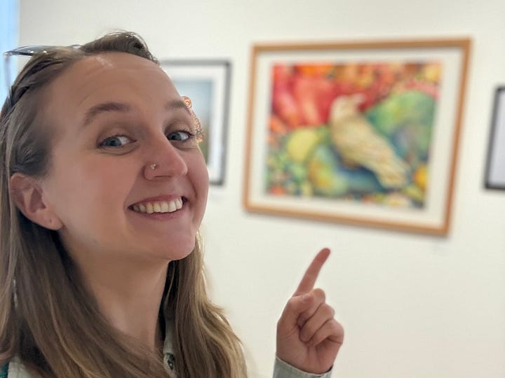 If you’re in the Chico area, I highly recommend stopping by MONCA (Museum of Northern California Art). They’re currently showing Perch, Flutter, and Soar, a group exhibition that includes my mom, Michelle Scott’s, work. The show explores winged creatures not just as forms, but as ideas, movement, instinct, and transformation. It’s a really beautiful, thoughtful collection, and well worth a visit.
