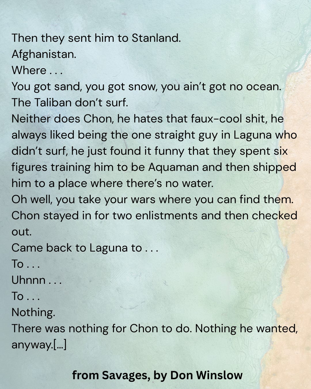 Here’s a tiny taste of Don Winslow from Ch.4 of Savages.